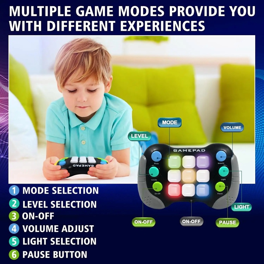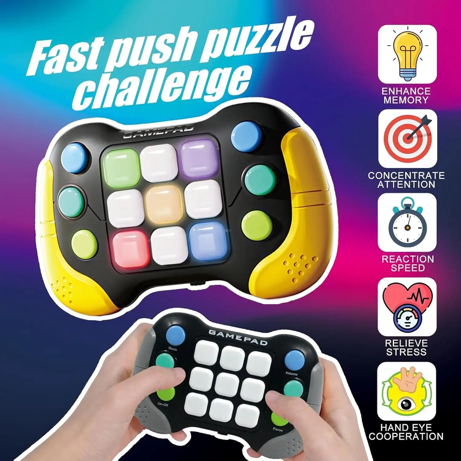 بنقدم لحضراتكم "Flash Push Pro - فلاش بوش"، الجيل الجديد والمتطور من ألعاب "البوب إت". جهاز بحجم الجيب، لكن إمكانياته جبارة! بيجمع بين الأضواء المبهجة، والموسيقى الحماسية، وتحديات السرعة والذاكرة.