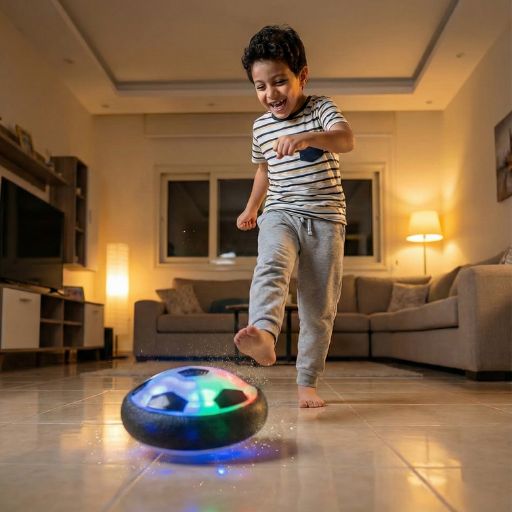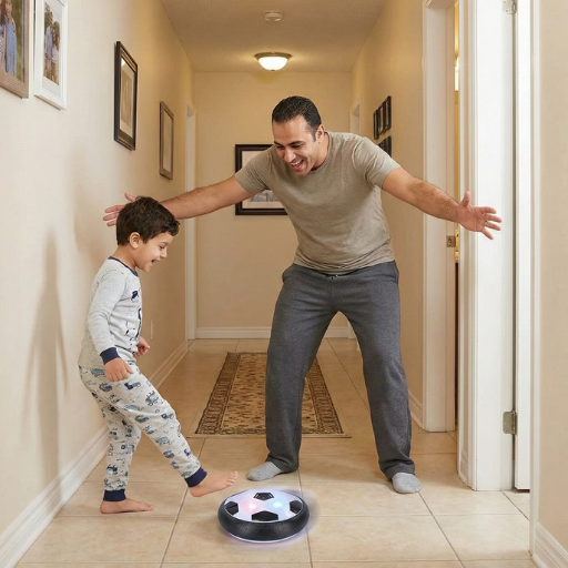 ابنك بيحب الكورة وخايفة على العفش؟ الكرة دي هي الحل! بتطير فوق الأرض ومحمية بإسفنج عشان متكسرش حاجة. متعة آمنة وإضاءة مبهجة. اطلبيها الآن.