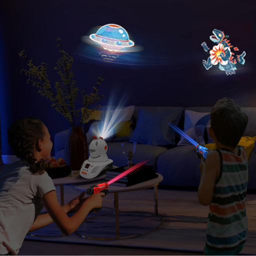 البروجيكتور بيلف 180 درجة وبيطلع أهداف عشوائية (بط، أطباق طائرة، ديناصورات).. وريني رد فعلك هيبقى سريع زيه ولا لأ؟ 😉