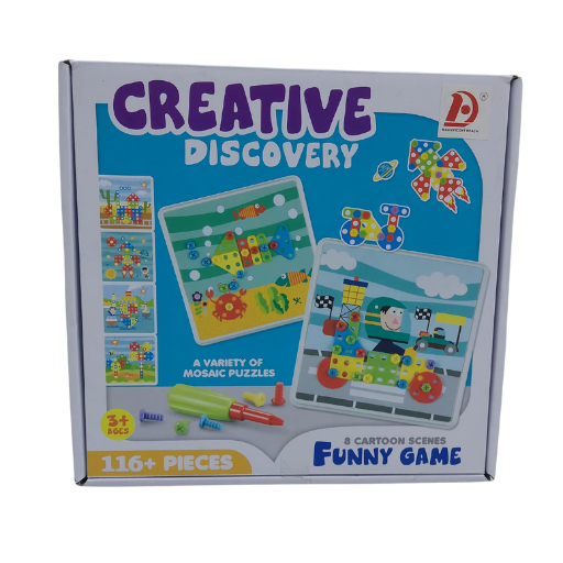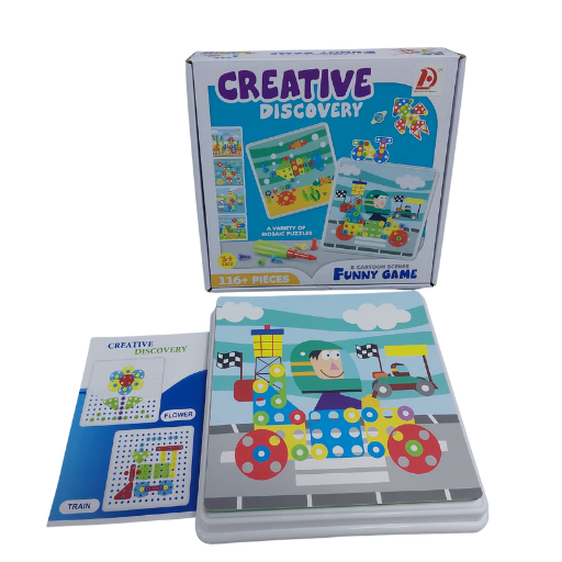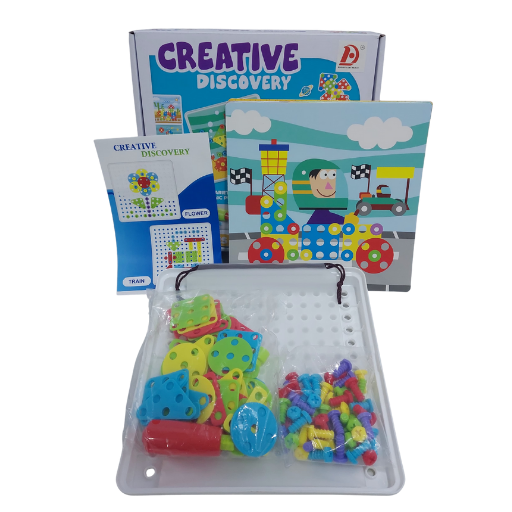 حقيبة المهندس الصغير لعبة فك وتركيب ممتعة فيها مفك ومسامير بلاستيك امنة و116 قطعة ملونة بتخلي طفلك يبني اشكال هندسية ولوحات فنية وينمي ذكاؤه وتركيزه بعيد عن الشاشات